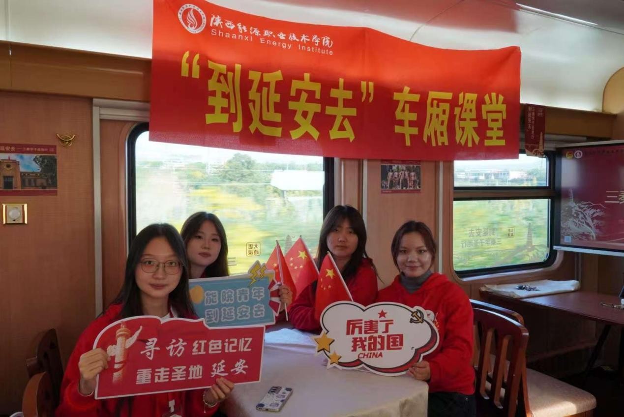 行前组织研读《延安时期重要文献选编》,研读关键文物、电报、照片背后的故事,让历史说话。并以团日活动的形式召开“延安精神如何照亮新时代青年奋斗之路”专题研讨。利用小红专学习平台完成线上课程学习。同时开设车厢课堂,学员们以讲革命人物、唱革命歌曲、念革命书信、说革命电影、走革命旧址的形式交流学习成果。