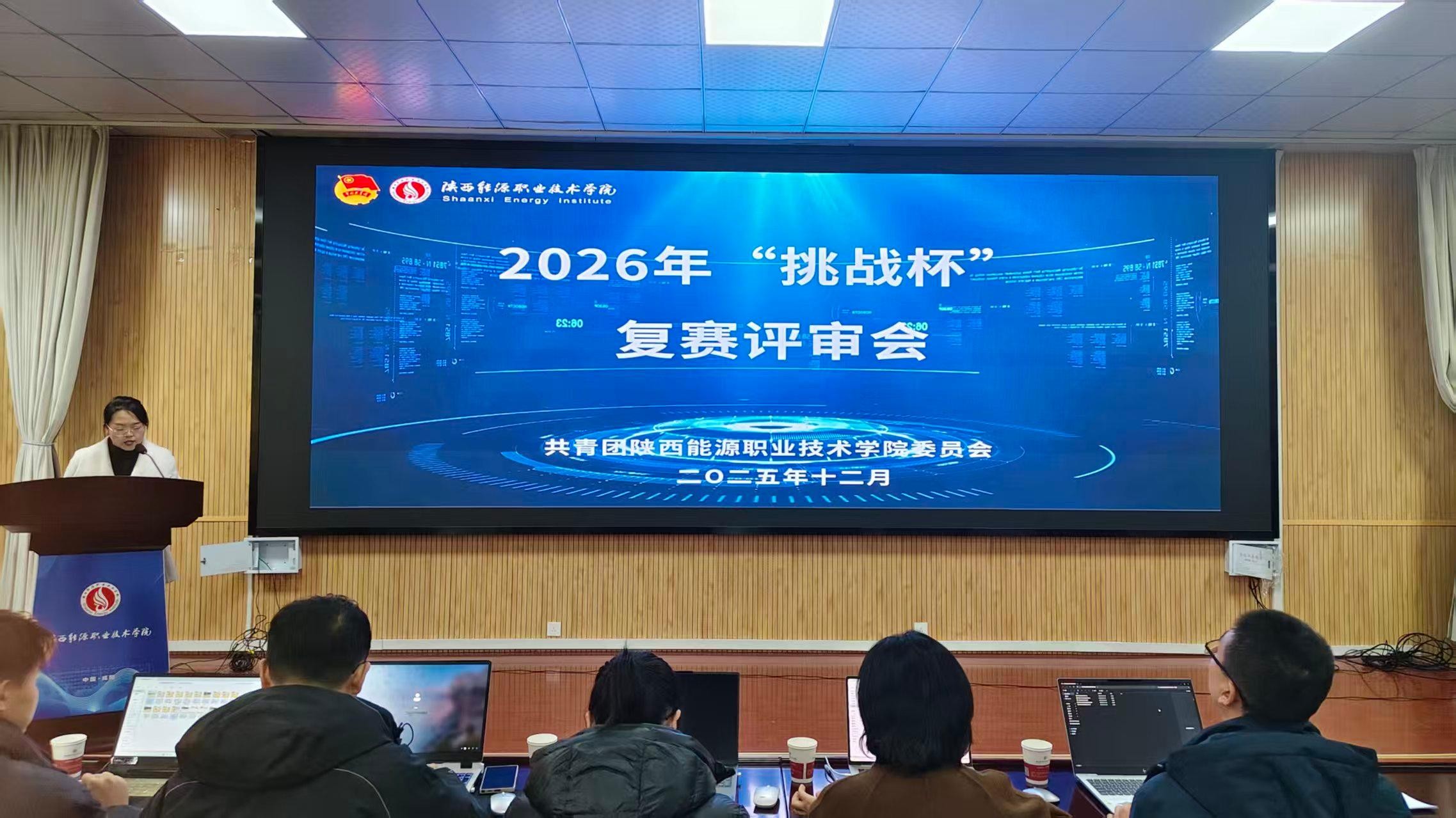 为增强我校学生的创新实践能力,选拔优秀项目,提升参赛项目质量,2025年12月4日,我校2026年“挑战杯”复赛评审会在文林大讲堂组织召开,此次复赛邀请“挑战杯”竞赛校外专家五名担任评审,各项目组团队成员及指导教师一百余名参加此次评审会。评审会由团委副书记郭少婷主持。