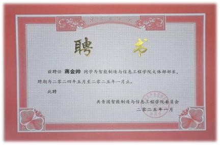 校园天地间,他以多元角色诠释担当。身兼智能制造与信息工程学院文体部部长和足球协会会长,在学院第六届团学代会现场,他与团队伙伴并肩而立,见证团学工作的薪火相传,更明晰了肩上的责任——要以饱满热情组织文体活动,丰富校园生活;要带领足球协会成员刻苦训练、积极参赛,为共同的热爱全力拼搏。