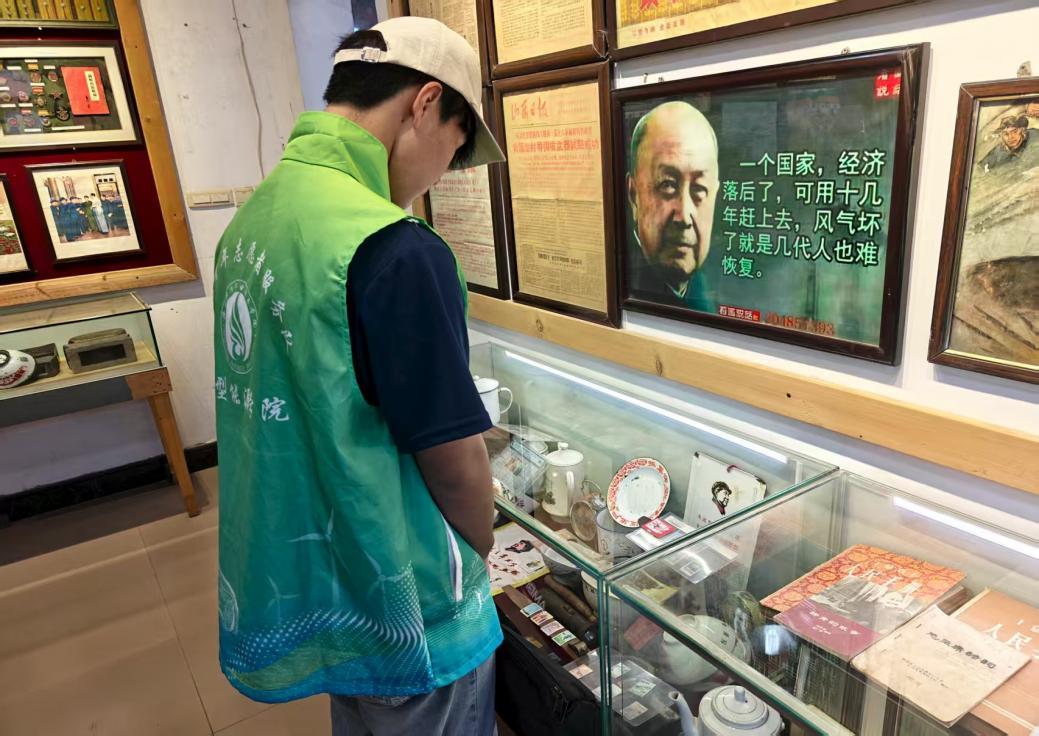 博物馆负责人魏德军,被誉为“收藏‘红色记忆’的人”。23年来,他倾注心血与近百万资金创办并运营着这座红色记忆博物馆。他热情接待实践团,详细讲述了建馆初衷、发展历程、珍贵藏品背后的故事,以及他对传承红色文化的深刻见解与殷切期望,使队员们对这座承载厚重历史的场馆有了初步而深刻的认识。随后,队员们自行参观各展厅。从革命时期的文件、书籍,到先烈们的生活用品、简易武器,丰富的展品无声诉说着那段波澜壮阔的革命岁月。大家认真研读文字介绍,沉浸其中,深切感受革命先辈为争取国家独立、民族解放而展现的坚定信念与伟大牺牲精神。