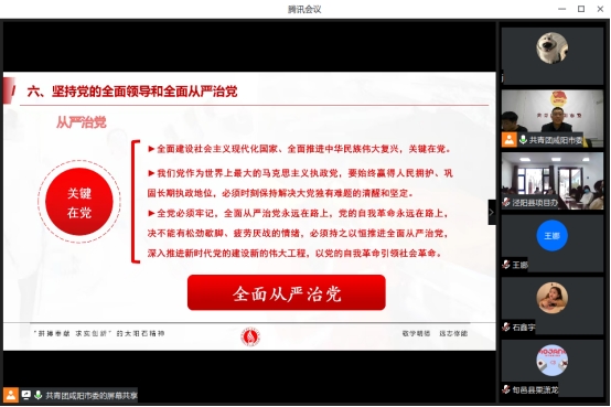 为深入学习贯彻习近平新时代中国特色社会主义思想,认真落实习近平总书记在党的二十大讲话中对当代青年的嘱托。加强对青年的思想政治引领,着力为党培养和输送青年政治骨干,12月8日下午,我校党委书记刘予东受邀在线上为共青团咸阳市委青年马克思主义者培养工程培训班作题为《做有理想、敢担当、能吃苦、肯奋斗的新时代好青年》的专题报告,此次培训全市西部计划志愿者160余人参加培训。