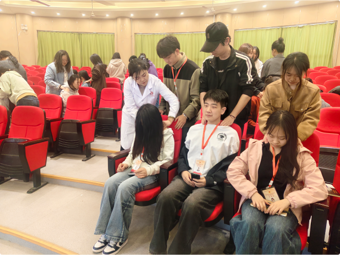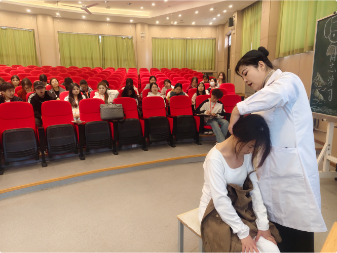 理论讲解结束后,杨老师现场示范了多种常用的肩颈推拿手法,并邀请学员上台体验。在杨老师的指导下,学员们认真学习,积极互动,现场气氛热烈。大家纷纷表示,通过此次讲座,不仅学习到了实用的肩颈推拿技巧,更深刻体会到了中医文化的博大精深。