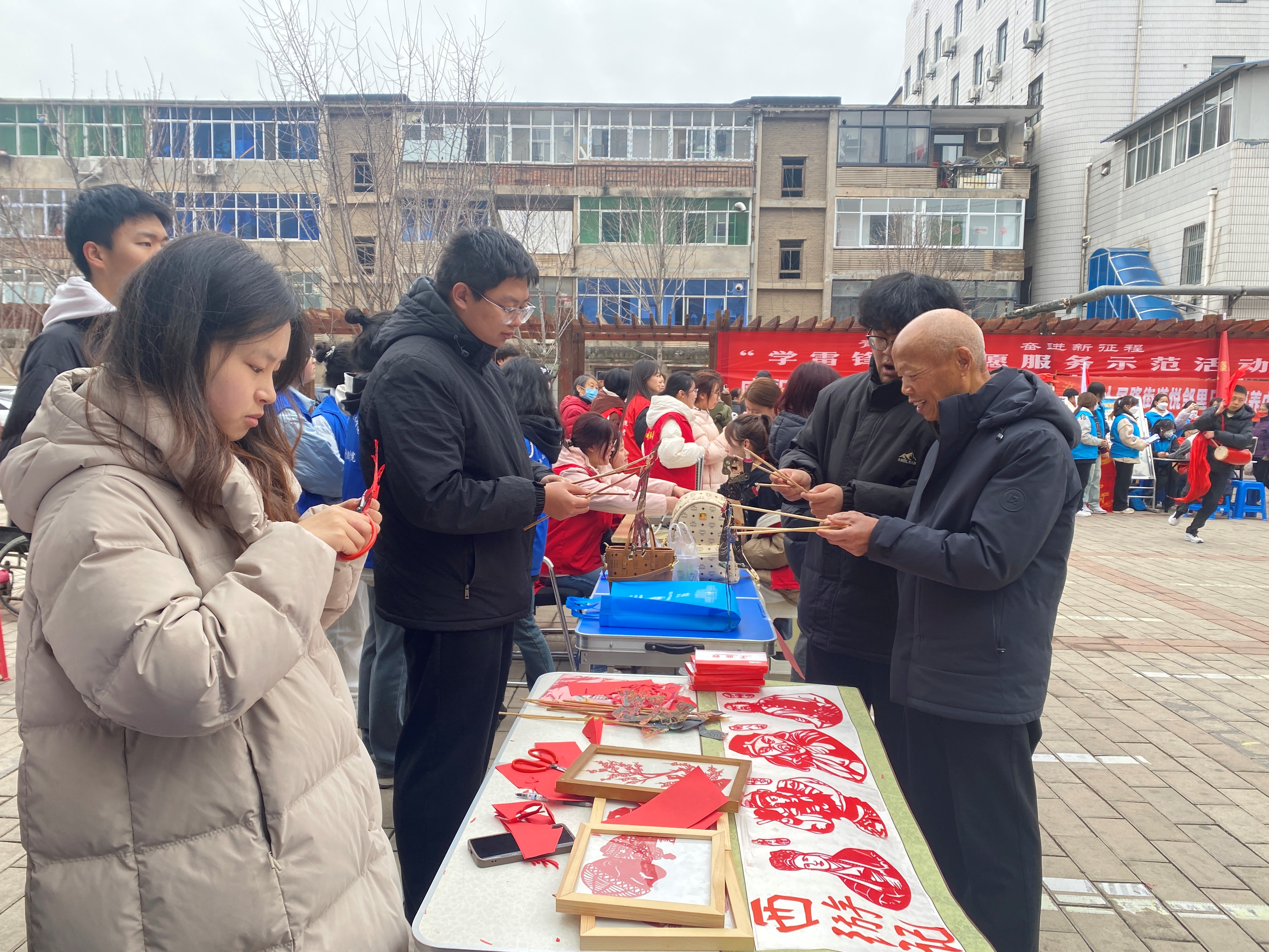智能机电学院20余名师生走进咸阳市天王社区,开展非遗文化展示和腰鼓表演活动。活动现场,精美的剪纸作品和皮影角色形态各异,引得居民们凑近观赏、询问技巧,学生们一边展示一边耐心讲解其剪纸技巧和皮影角色的灵活操作。另一边,活力四射的腰鼓表演动作整齐有力,鼓点激昂,瞬间点燃现场气氛,不少居民也跟着节奏鼓掌。通过皮影、剪纸等传统手工艺展示,向社区居民普及非遗文化知识,弘扬中华优秀传统文化。陕北腰鼓表演为活动现场增添了浓厚的文化氛围,赢得了居民们的阵阵掌声。志愿者们身体力行,丰富了社区文化生活,传承了非遗文化,更以实际行动弘扬了雷锋精神,加强了学校与社区的联系,获得社区居民一致好评。