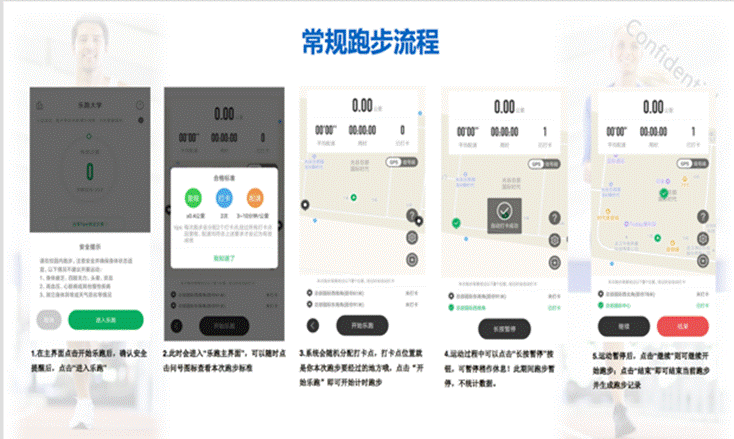 15、为保证锻炼效果,禁止任何作弊行为,包括使用交通工具、替人代跑等行为,乐跑后台会根据跑步分段配速、轨迹信息以及手机ID变更等情况分析作弊行为,一经核实将取消本学期体育成绩,并在学校范围通报。同时也欢迎同学们匿名监督和举报。