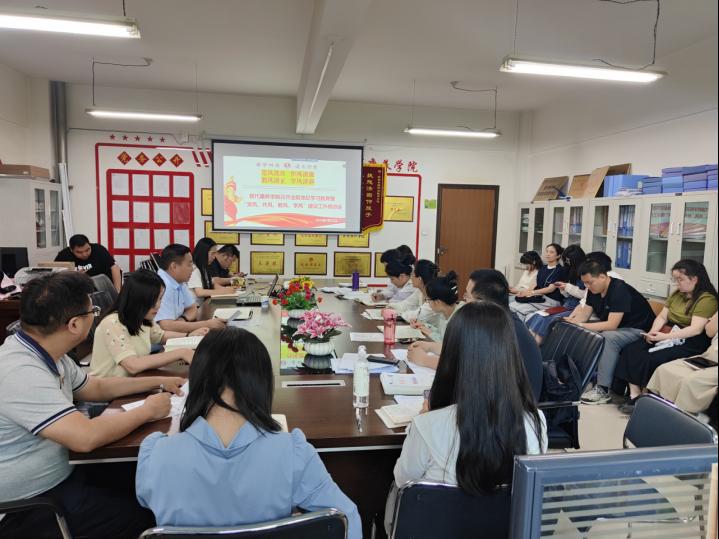 为提高党员干部的党性修养和纪律观念,落实立德树人的根本任务,以学校双高建设的战略目标为指引,聚焦学院重点工作,推进学院稳健发展,5月15日下午,现代康养学院在409会议室以线上、线下相结合的形式,召开党纪学习教育暨“党风、作风、教风、学风”(以下简称“四风”)建设工作推进会。学院党政领导班子、全体党教师参加会议,会议由学院党总支书记唐恭贺主持。