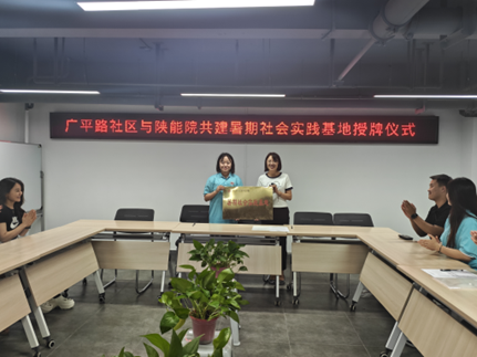 “康养先锋”志愿服务实践队与广平路社区签订《共建暑期社会实践基地合作协议》,双方本着“资源共享”“互惠共进” 的原则,加强学校和社区双方互动,形成常态化社区志愿服务活动机制。