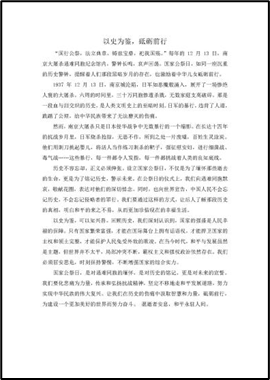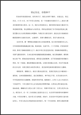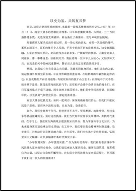 在本次活动中,我们看到了一份份精心撰写的主题征文,每一篇都饱含着对国家公祭日的思考和感悟。青年们深入挖掘历史背后的含义,将对惨痛历史的真挚情感融于独特视角,让我们更为深刻地铭记了南京大屠杀带来的伤痛,从而不忘历史、缅怀先烈。这些作品让我们感受到了历史的沉重,也让我们更加坚定了珍爱和平的决心。