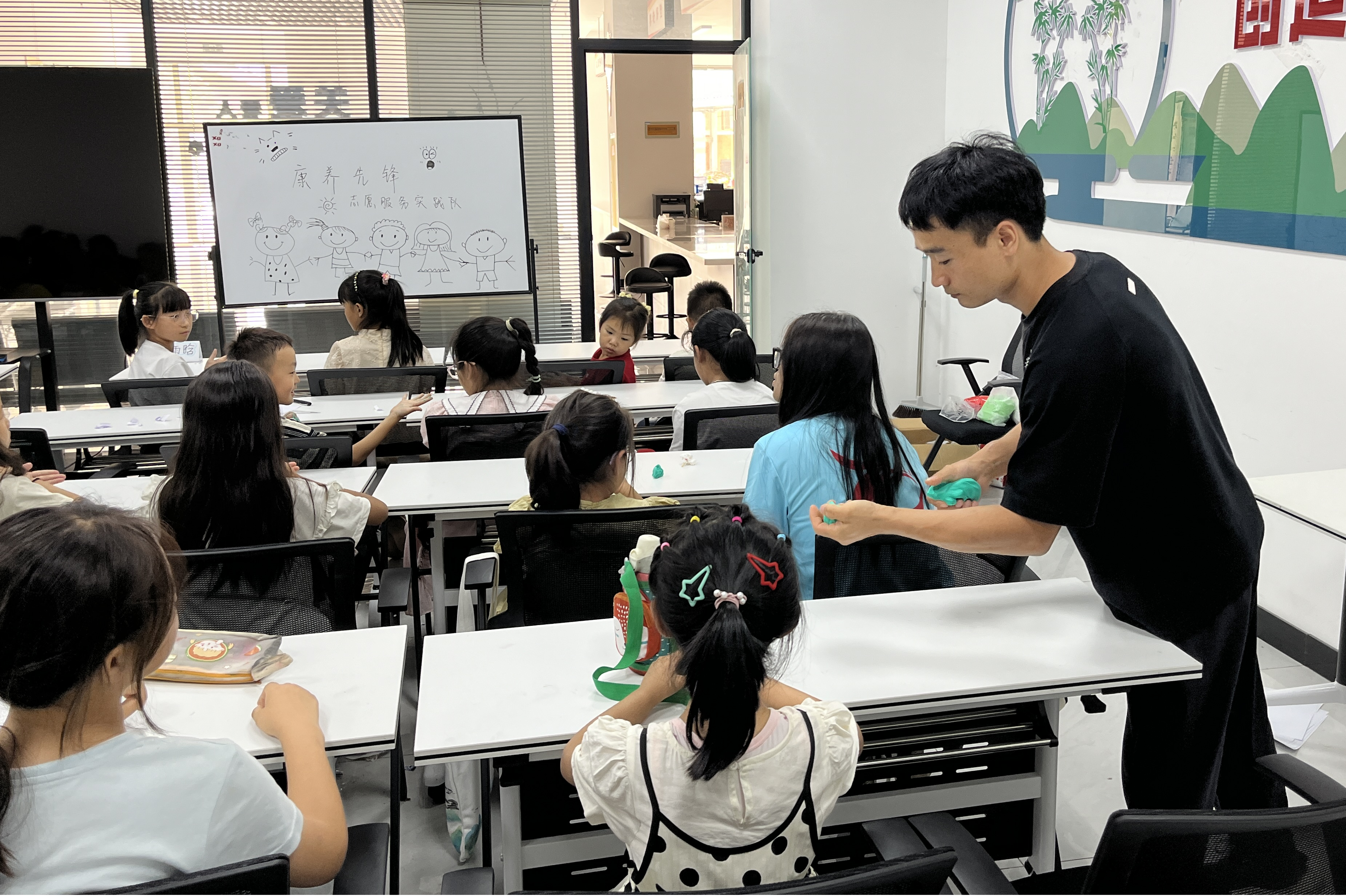 为传承中华优秀传统文化,丰富青少年暑期生活,7月14日,陕西能源职业技术学院“康养先锋”志愿服务实践队联合宜君县宜园社区、任悦社工走进宜园社区暑期托管班,开展“诗韵陶趣 童梦飞扬”主题实践活动。通过诗词大会、手工陶艺等沉浸式体验,带领20余名中小学生感受传统文化的魅力,在寓教于乐中提升文化自信。