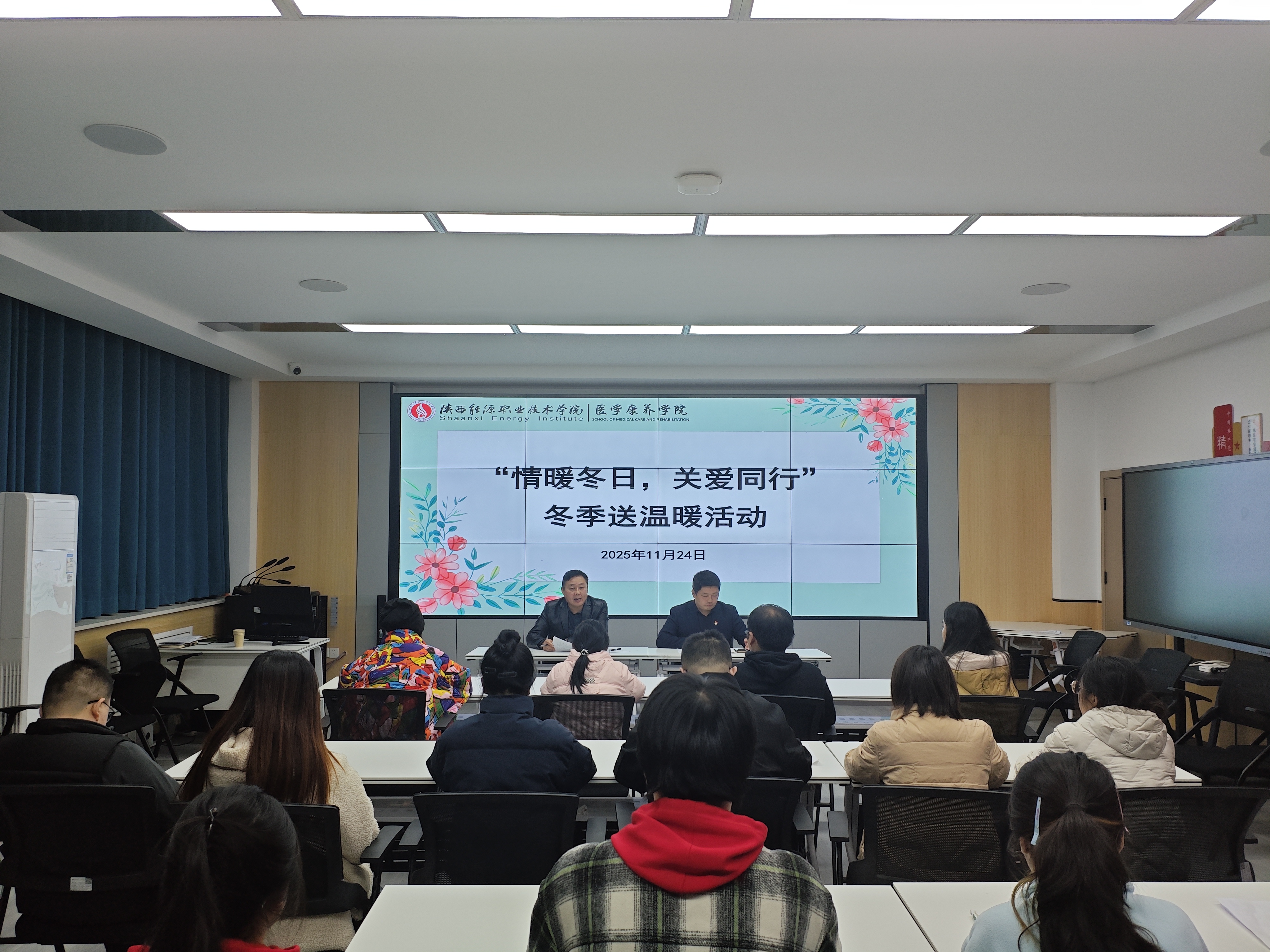 为深入落实学校党政对学子的关怀关爱,切实守护学生成长、传递校园温情,11月24日至26日,医学康养学院以“情暖冬日,关爱同行”为主题,在两校区启动冬季送温暖活动。活动由党总支副书记冯毅主持,学院精准对接学生需求,通过物资帮扶、暖心座谈、走访慰问等形式,将温暖送到学生心坎,筑牢校园冬日“暖心防线”。
