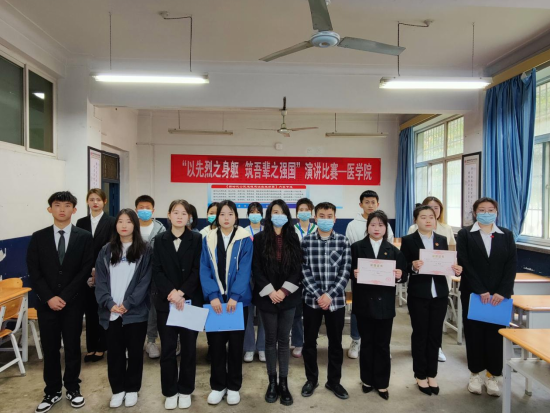 为引导广大团员厚植爱党、爱国、爱社会主义的情感,让红色基因、革命薪火代代相传,2022年4月27日中午,医学院在教学楼104举办“以先烈之身躯,筑吾辈之强国”演讲比赛,辅导员师怡子,伊龙参加本次活动。