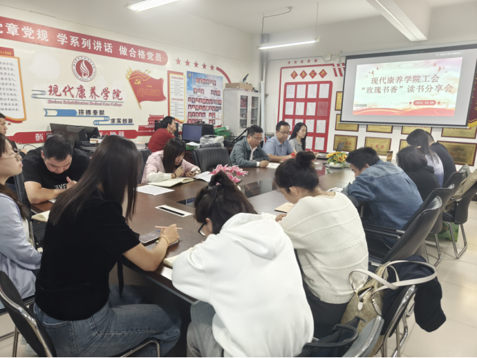 10月9日下午,现代康养学院工会分别在咸阳校区和临潼校区,通过线下线上结合的形式,同步举办了“玫瑰书香”读书分享会活动,活动由工会组织委员彭晨主持,我院全体教职工参加了本次活动。