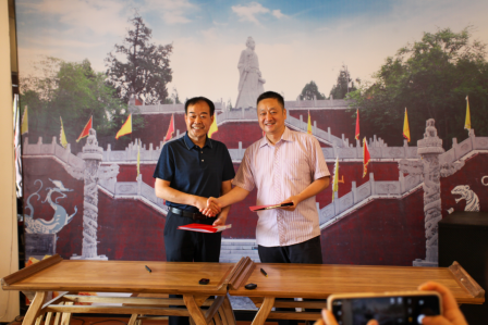 7月17日上午,陕西能源职业技术学院与药王山旅游开发有限公司共建思想政治教育实践教学基地的签约及揭牌仪式在铜川耀州区药王山景区举行。铜川市药王山旅游开发有限公司董事长郭宜川、总经理杨继涛、副总经理王友刚、副总经理贾磊,铜川日报社社长、总编高彧,陕西能源职业技术学院副校长刘浩,党政办公室主任史君,人事处处长陈亚军,医学院院长高惠霞及铜川日报社记者和国培班的学员等30人出席仪式,会议由杨继涛主持。