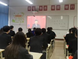 咸阳校区学工支部教师及学生代表在教学楼多媒体教室收看现场直播 |