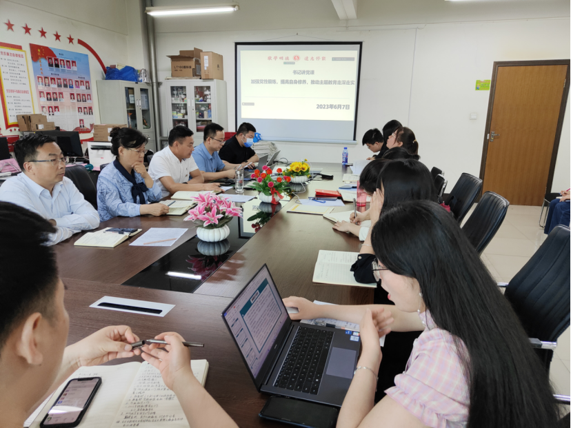 6月7日,现代康养学院在办公室409开展书记讲党课活动。党总支书记唐恭贺同志以“加强党性锻炼,提高自身修养,推动主题教育走深走实”为主题讲党课,现代康养学院全体教职工参会。