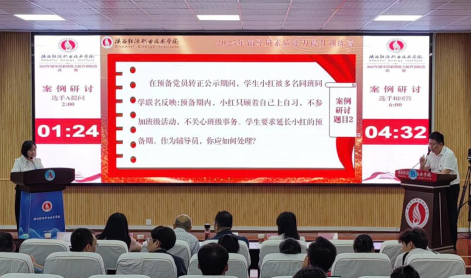 全校辅导员前期经过二级学院选拔推荐、基础知识测试环节后,10名辅导员入围决赛。决赛设置学情分析、案例研讨和谈心谈话三个环节。在基础知识测试环节,通过党的创新理论、相关方针政策等内容,全面考察辅导员的政治素养与理论功底;学情分析环节主要考察辅导员对所带学生基本情况的熟悉程度;案例研讨环节主要考察辅导员综合运用理论分析问题、研判问题、解决问题的能力;谈心谈话环节则直观考核辅导员解决学生实际问题的能力与水平,充分展现高校辅导员的职业素养、沟通技巧与育人智慧。