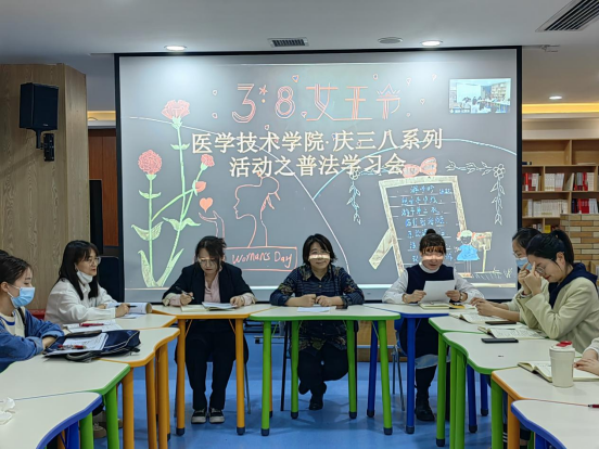 3月15日下午2:30,院工会在咸阳校区教师发展中心组织女工开展普法宣传学习活动。韩晓磊带领全院女职工学习宣传新修订的《中华人民共和国妇女权益保障法》等法律法规政策。郑倩和姚少芳分别带领女职工认真学习了习近平总书记关于工人阶级和工会工作、关于妇女工作的重要论述等内容。