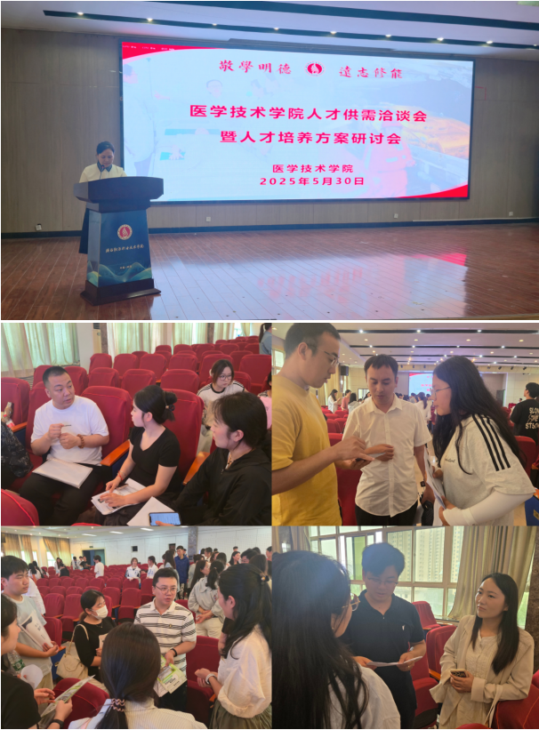 为深化产教融合,精准对接行业人才需求,优化学院人才培养方案,5月30日,医学技术学院召开人才供需洽谈会暨人才培养方案研讨会。医学技术学院党政领导、企业代表、专业教师、班主任及毕业班学生参加了本次会议。