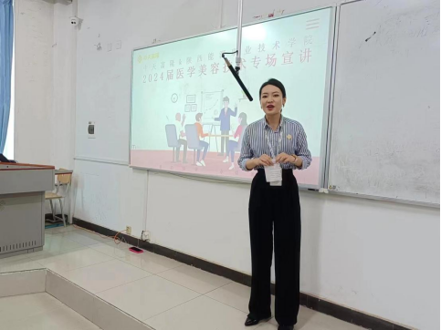 为进一步拓宽毕业生实习就业渠道,给学生提供更多的就业选择,5月8日-12日,西安市高新区圣瑞美容部、陕西睦安健康管理有限公司、陕西皇家天使健康美容管理顾问有限公司、西安德尔美容医疗美容有限公司、西安中天富隆健康科技有限公司五家企业来我院进行座谈交流,医学技术学院党总支书记巩明发、副院长梁爽、教研室主任张荣、班主任伊龙参加。