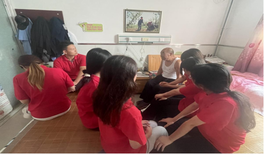 7月15日上午,我校“阐幽本草 知行合医”暑期社会实践团在咸阳永康颐养中心,拜访看望了刘振发、熊建勋、刘天智三名老党员,聆听他们加入中国共产党、扎根基层、为国效力的感人故事,为全体实践团成员上了一堂生动的“大思政课”。