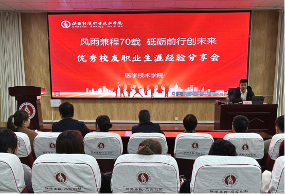 七秩芳华,盛世如约。为迎接学校建校70周年,不断提高人才培养质量,充分发挥优秀校友榜样引领作用,引导青年树立明确的职业发展目标,近日医学技术学院在咸阳、临潼校区举办“风雨兼程七十载 砥砺前行创未来”优秀校友职业生涯分享会。医学技术学院师生代表400余人参加活动。