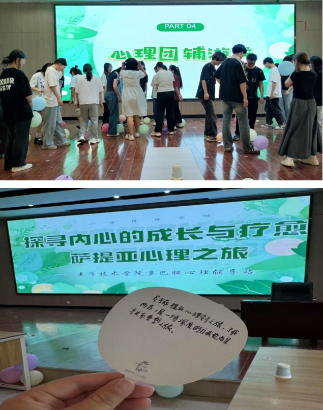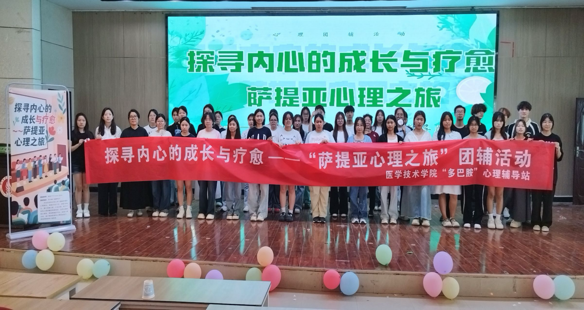 6月18日下午,为缓解同学们期末考试来临之际因学业压力带来的焦虑,医学技术学院多巴胺心理驿站在实训楼六楼报告厅举办“探寻内心的成长与疗愈—萨提亚心理之旅”心理团辅主题活动,学院120余名师生共同参与了此次心灵探索之旅。