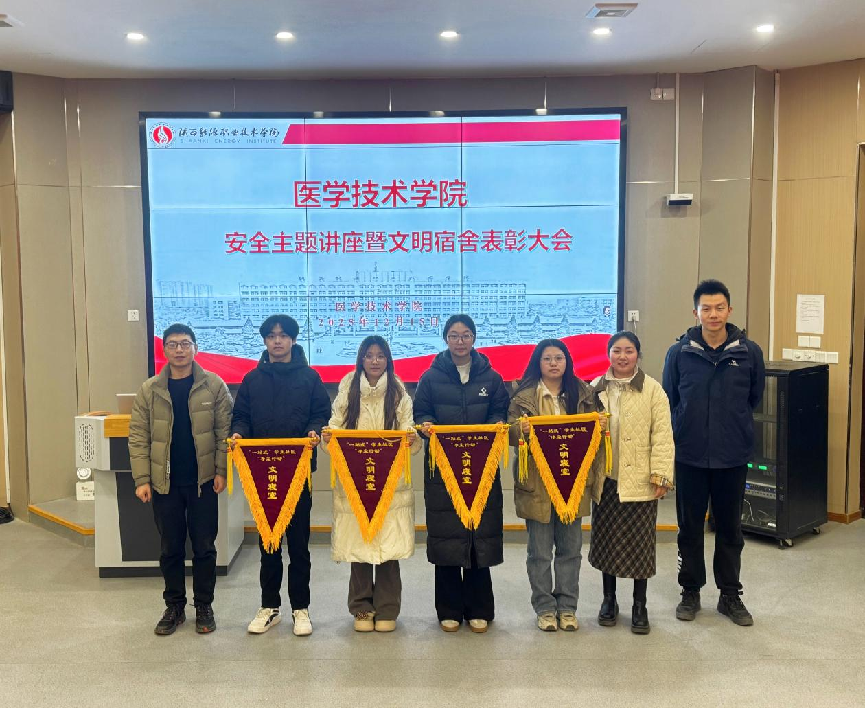 医学技术学院于2025年12月15日在临潼校区105教室召开安全主题讲座暨文明宿舍表彰大会。2024、2025级宿舍舍长及各班生活委员100余人参加会议。