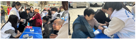 活动现场暖意浓浓、秩序井然,志愿者立足专业所长,设置四大服务板块为民办实事。义诊区,志愿者免费为居民测血压、血糖,细致解答常见病、慢病预防调理问题,提供用药指导和健康建议。