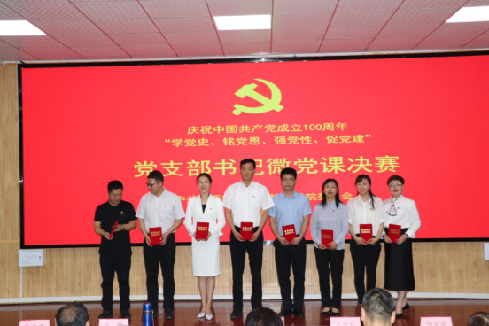 决赛采用党支部书记现场讲党课的方式进行,各评委根据评分标准和现场综合表现进行打分、排名,最终评选出一等奖1名,二等奖2名,三等奖3名,优胜奖2名。决赛在主持人的精彩主持下8名党支部书记依次登场,从自身岗位出发,与实际工作相结合,用生动的事例、生动的演讲,通过PPT、视频等多媒体形式展示微党课的内容,或娓娓道来、打动人心,或慷慨激昂、引人入胜,用坚定的声音传播着新时代的精神力量。