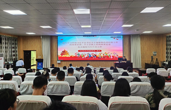 讲座围绕宗教工作与民族工作2大主题先后展开深度讲解。在宗教工作板块,高平系统解读了习近平总书记关于宗教工作的重要论述,详细阐释《宗教事务条例》核心内容,并针对高校宗教工作的重点任务进行专门指导。民族工作部分,讲座从党的民族工作历史切入,深入阐释习近平总书记关于加强和改进民族工作的重要思想,重点讲解铸牢中华民族共同体意识的理论内涵与实践路径,为高校民族工作提供了具体实施指南。整场讲座案例鲜活、分析透彻,既有政策理论高度,又有实践操作深度,对学校扎实推进民族团结教育和有效抵御非法宗教渗透具有重要指导意义。